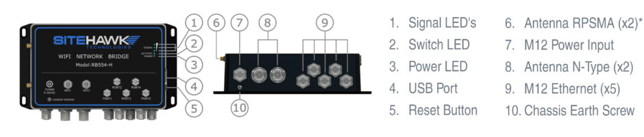 The SiteHawk RB554 Wi-Fi Network Bridge extends your Wi-Fi network with five Ethernet Ports and an optional Hotspot radio in a compact industrial enclosure.